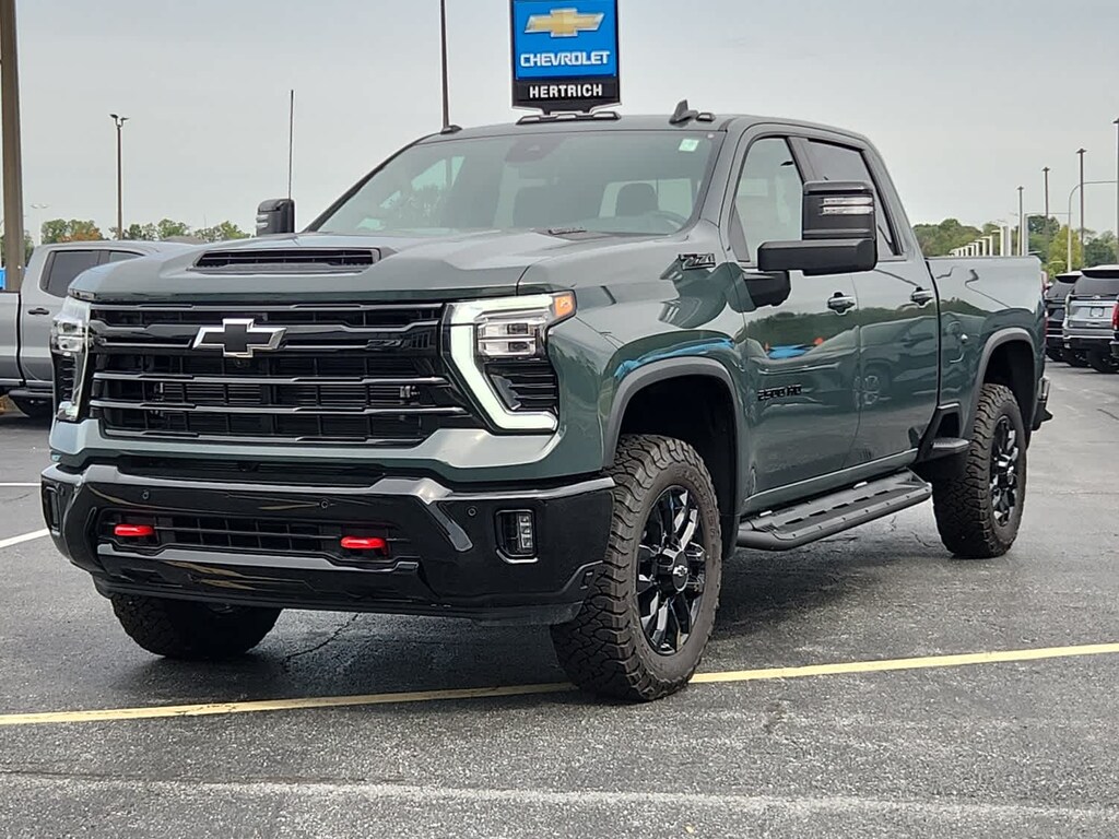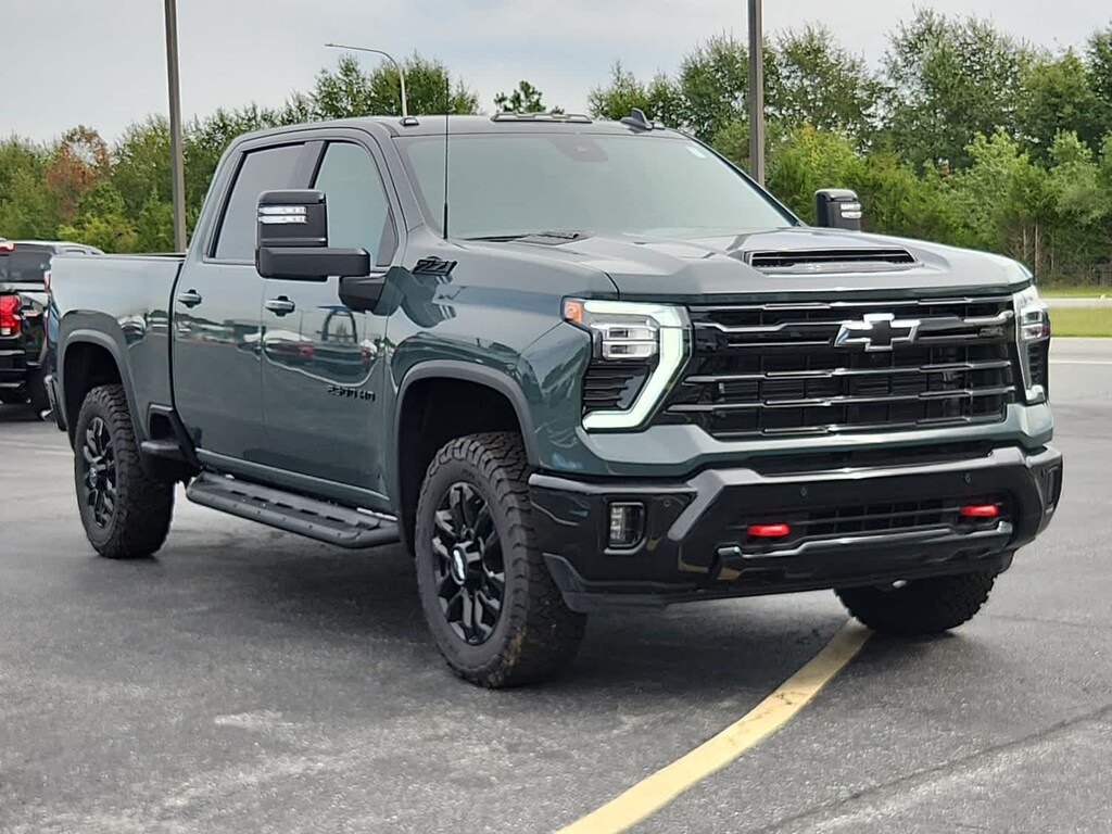 ENGINE, DURAMAX 6.6L TURBO-DIESEL V8 B20-Diesel compatible, (470 hp [350.5 kW] @ 2800 rpm, 975 lb-ft of torque [1322 Nm] @ 1600 rpm), TRAIL BOSS PACKAGE Includes black grille bar with "Chevy Black Bow Tie", Black grille inserts, (SRI) 20" High gloss Black painted wheels, (VB5) High Gloss Black painted front bumper, (VT5) High Gloss Black painted rear bumper, (UGA) Red Tow Hooks, (QFG) LT275/65R20 BF Goodrich off-road tires, Black skid plate, Black badging, Black bowtie on horn pad, (DP6) High Gloss Black mirror caps, Black hood vent surround, and (CGN) Chevytec spray-on bedliner. Includes high-intensity LED headlamps and (DWI) trailer mirrors. SAFETY PACKAGE includes (UD5) Front and Rear Park Assist, (UKV) Trailer Side Blind Zone Alert, (UFG) Rear Cross Traffic Alert, (UV2) HD Surround Vision, (UVN) Bed View Camera and (TRG) Trailer Camera Provisions, CONVENIENCE PACKAGE includes (UF2) Cargo bed LED lighting, (CJ2) dual-zone automatic climate control, (A2X) 10-way power driver seat including power lumbar, (N37) manual tilt/telescoping steering column, (T3U) LED fog lamps, LPO, OFF-ROAD ASSIST STEPS, 3" ROUND TUBULAR, BLACK (dealer-installed), SEATS, FRONT BUCKET with center console, for Crew Cab and Double Cab models, CONVENIENCE PACKAGE II includes (PZ8) Hitch Guidance with Hitch View, (UET) Trailering App, (A48) rear sliding power window and (UG1) Universal Home Remote. Includes (R7O) Cloth Rear Seat with Storage Package. REMOTE START PACKAGE includes (BTV) Remote Start, (UTJ) Theft Deterrent System and (C49) rear-window defogger, Z71 OFF-ROAD PACKAGE includes (Z71) Off-Road suspension with off-road tuned twin tube Rancho shocks, (JHD) Hill Descent Control and (NZZ) skid plates (transfer case and oil pan) Includes (QXT) LT265/70R17 all-terrain, blackwall tires and molded in color Black grille. MIRRORS, OUTSIDE POWER-ADJUSTABLE VERTICAL TRAILERING WITH HEATED AND AUTO-DIMMING UPPER GLASS lower convex mirrors, turn signal indicators, puddle lamps, (U12) perimeter lighting, auxiliary lighting, power folding/manual extending (extends 3.31" [84.25mm]) Includes (DD8) auto-dimming rearview mirror.), TAILGATE, MULTI-FLEX with six functional load/access features, NOTE: Auto release can be disabled if ball hitch is installed. See Owner's manual for details, HEAT PACKAGE includes (KA1) Heated driver and passenger seats and (KI3) Heated steering wheel, LPO, ALL-WEATHER FLOOR LINERS 1st and 2nd rows, (includes Z71 logo on front mats), AUDIO SYSTEM, CHEVROLET INFOTAINMENT 3 PREMIUM SYSTEM with Google built-in compatibility (select service plan required, terms and limitations apply) including navigation capability, 13.4" diagonal HD color touchscreen, includes multi-touch display, AM/FM stereo, Bluetooth® streaming audio for music and most phones; featuring Wireless Apple CarPlay® and Wireless Android Auto® capability for compatible phones, advanced voice recognition, in-vehicle apps, personalized profiles for infotainment and vehicle settings (STD), TRANSMISSION, ALLISON 10-SPEED AUTOMATIC, SEAT, UP-LEVEL REAR WITH STORAGE PACKAGE 60/40 Split rear seat with center armrest, right, and left seat back storage, and under seat jack storage (Crew Cabs Only) Rear seat leather appointed.
