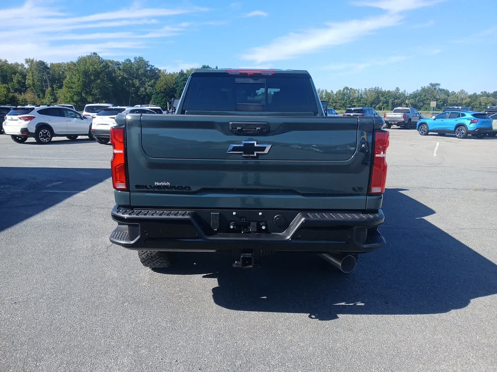B20-Diesel compatible, (470 hp [350.5 kW] @ 2800 rpm, 975 lb-ft of torque [1322 Nm] @ 1600 rpm), Includes black grille bar with "Chevy Black Bow Tie", Black grille inserts, (SRI) 20" High gloss Black painted wheels, (VB5) High Gloss Black painted front bumper, (VT5) High Gloss Black painted rear bumper, (UGA) Red Tow Hooks, (QFG) LT275/65R20 BF Goodrich off-road tires, Black skid plate, Black badging, Black bowtie on horn pad, (DP6) High Gloss Black mirror caps, Black hood vent surround, High Gloss Black door handles and (CGN) Chevytec spray-on bedliner. Includes high-intensity LED headlamps and (DWI) trailer mirrors. includes (UD5) Front and Rear Park Assist, (UKV) Trailer Side Blind Zone Alert, (UFG) Rear Cross Traffic Alert, (UV2) HD Surround Vision, (UVN) Bed View Camera and (TRG) Trailer Camera Provisions (Includes (UET) Trailering App. includes (UF2) Cargo bed LED lighting, (CJ2) dual-zone automatic climate control, (A2X) 10-way power driver seat including power lumbar, (N37) manual tilt/telescoping steering column, (T3U) LED fog lamps, includes (PZ8) Hitch Guidance with Hitch View, (UET) Trailering App, (A48) rear sliding power window and (UG1) Universal Home Remote. Includes (R7O) Cloth Rear Seat with Storage Package. includes (BTV) Remote Start, (UTJ) Theft Deterrent System and (C49) rear-window defogger, includes (Z71) Off-Road suspension with off-road tuned twin tube Rancho shocks, (JHD) Hill Descent Control and (NZZ) skid plates (transfer case and oil pan) (Includes (QXT) LT265/70R17 all-terrain, blackwall tires and molded in color Black grille. lower convex mirrors, turn signal indicators, puddle lamps, (U12) perimeter lighting, auxiliary lighting, power folding/manual extending (extends 3.31" [84.25mm]) Includes (DD8) auto-dimming rearview mirror which can be upgraded to (DRZ) Rear Camera Mirror.), with six functional load/access features, NOTE: Auto release can be disabled if ball hitch is installed. See Owner's manual for details, includes (KA1) Heated driver and passenger seats and (KI3) Heated steering wheel, with Google built-in compatibility (select service plan required, terms and limitations apply) including navigation capability, 13.4" diagonal HD color touchscreen, includes multi-touch display, AM/FM stereo, Bluetooth® streaming audio for music and most phones; featuring Wireless Apple CarPlay® and Wireless Android Auto® capability for compatible phones, advanced voice recognition, in-vehicle apps, personalized profiles for infotainment and vehicle settings (STD), TRANSMISSION, 10-SPEED AUTOMATIC, 60/40 Split rear seat with center armrest, right, and left seat back storage, and under seat jack storage (Crew Cabs Only) Rear seat leather appointed.